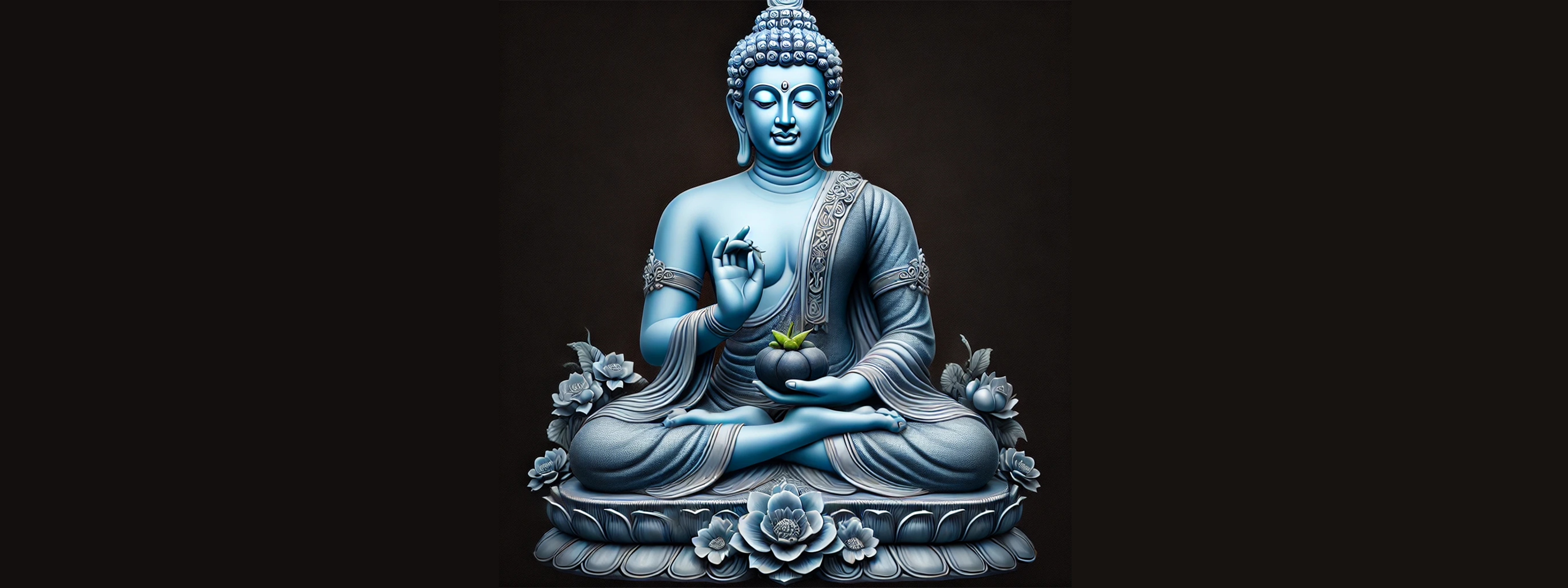 Der heilende Buddha wird oft mit blauer Haut dargestellt, was seine heilende Energie und Weisheit symbolisiert. Seine meditative Haltung strahlt Gelassenheit und Frieden aus. In seiner linken Hand hält er eine heilende Myrobalan-Frucht und in seiner rechten Hand eine Bettelschale gefüllt mit heilendem Nektar.