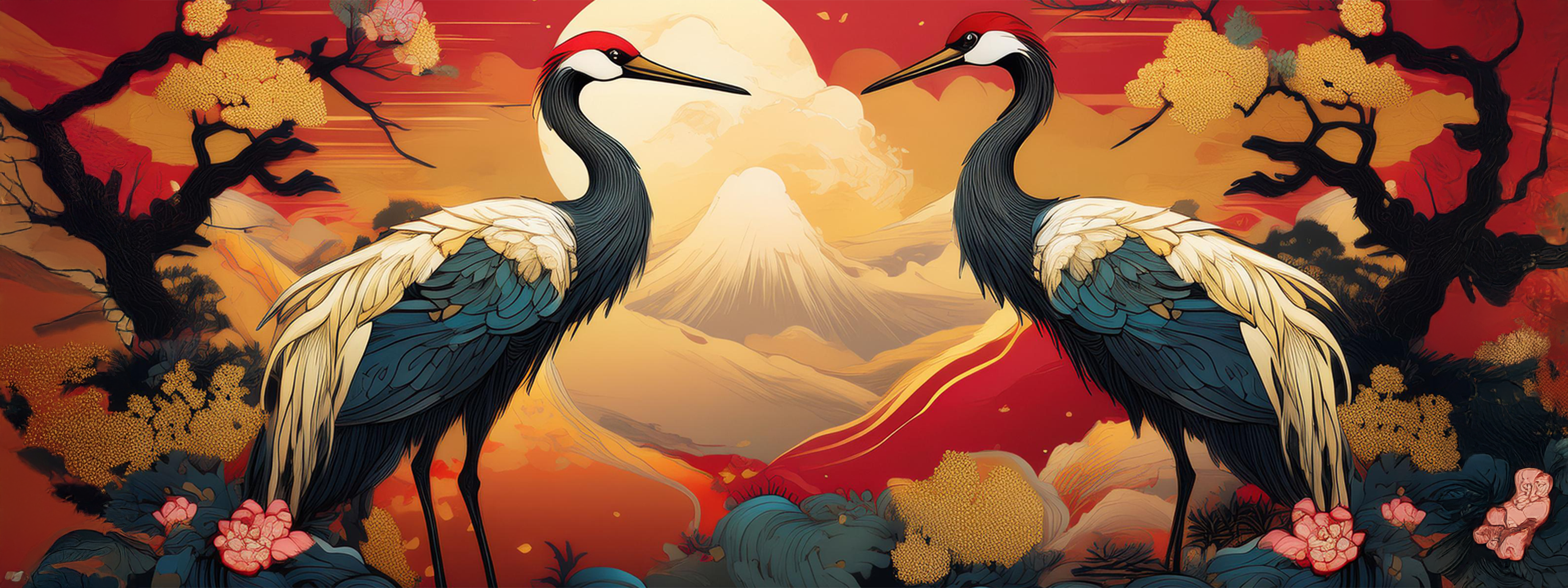 Kraniche haben in der asiatischen Mythologie eine besondere und tiefgreifende Bedeutung. Sie sind dafür bekannt, Langlebigkeit, Glück, Weisheit und Frieden zu repräsentieren. In der chinesischen Mythologie werden Kraniche oft als heilige Vögel angesehen, die Langlebigkeit und Unsterblichkeit symbolisieren. Sie gelten als Boten zwischen Erde und Himmel und werden häufig mit daoistischen Unsterblichen in Verbindung gebracht. Der Kranich symbolisiert auch Weisheit und hohe moralische Werte. Seine anmutige Haltung und sein ruhiges Auftreten machen ihn zu einem Symbol für Gelassenheit und Würde.